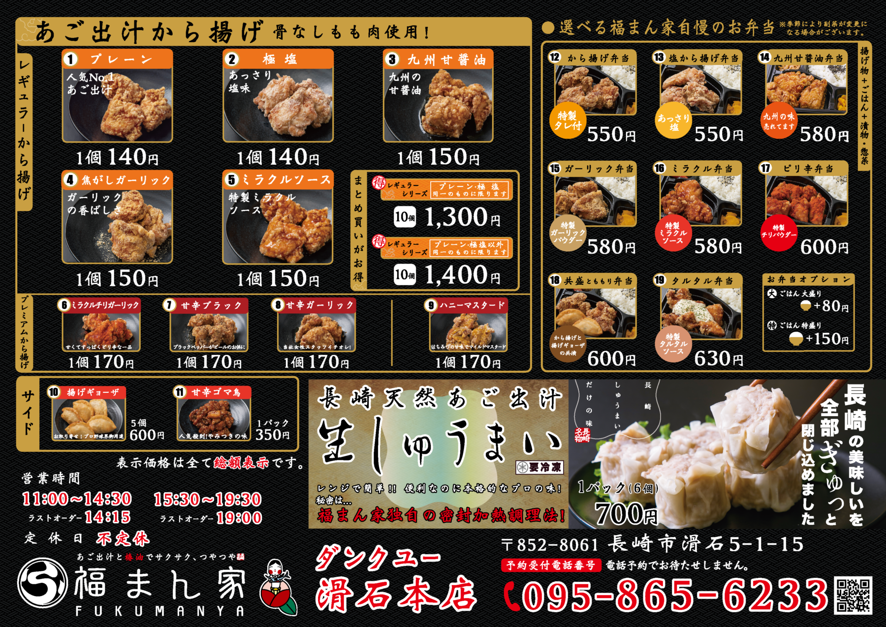 SHOP ダンクユー滑石本店 営業時間 11:00~14:30(LO14:15) 15:30~19:30(LO19:00) 詳細は店舗にご確認ください。定休日:不定休 住所 長崎県長崎市滑石5-1-15TEL. 095-865-6233